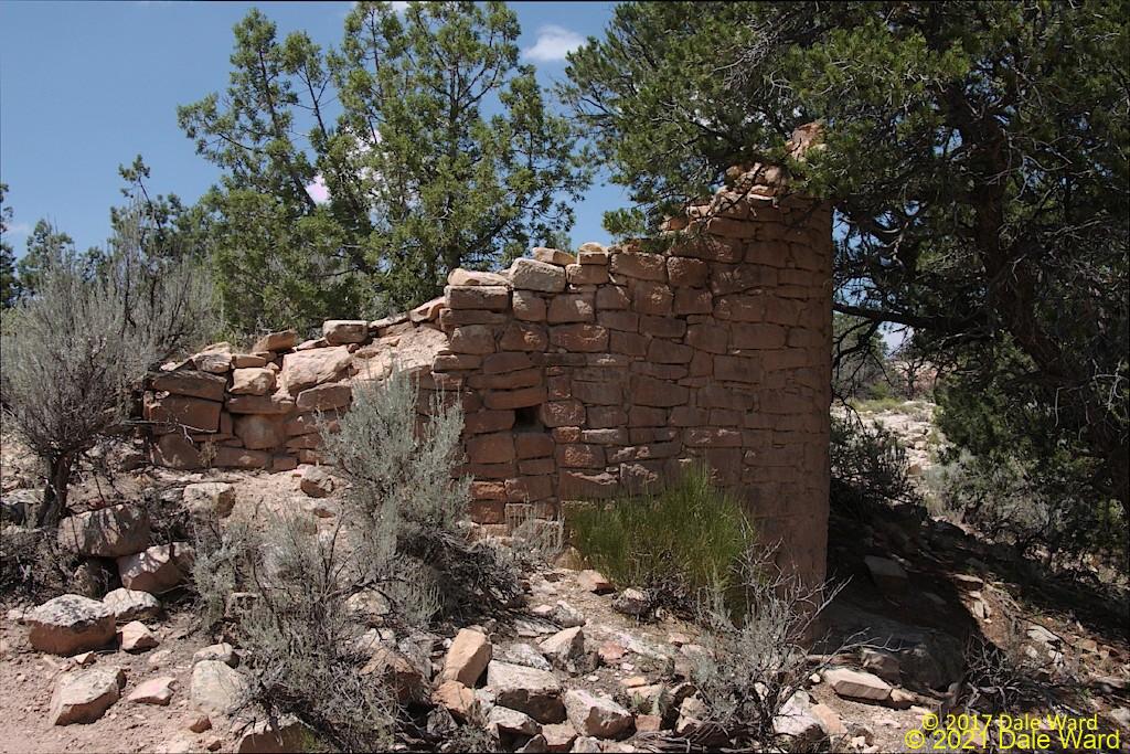 Closer view of the platform on Castle Rock. You can see the remains of an Ancestral Puebloan ruin that was built on the platform. Old photos from the early 1900s show a more complete ruin on this platform.
