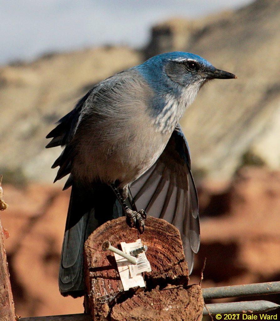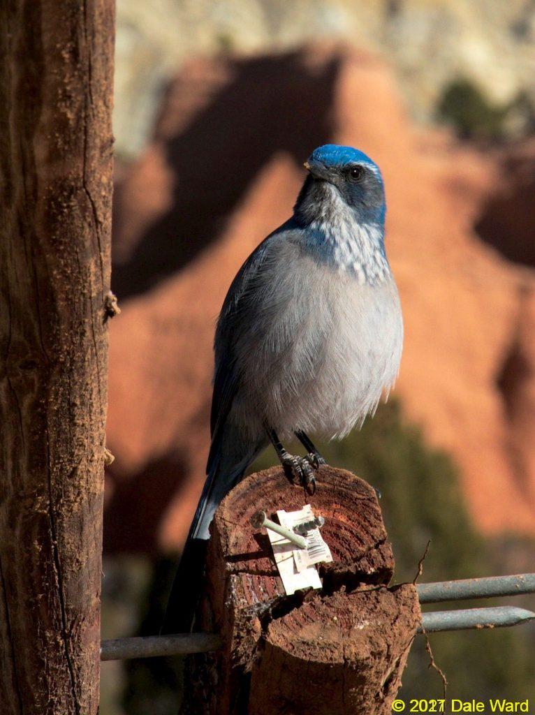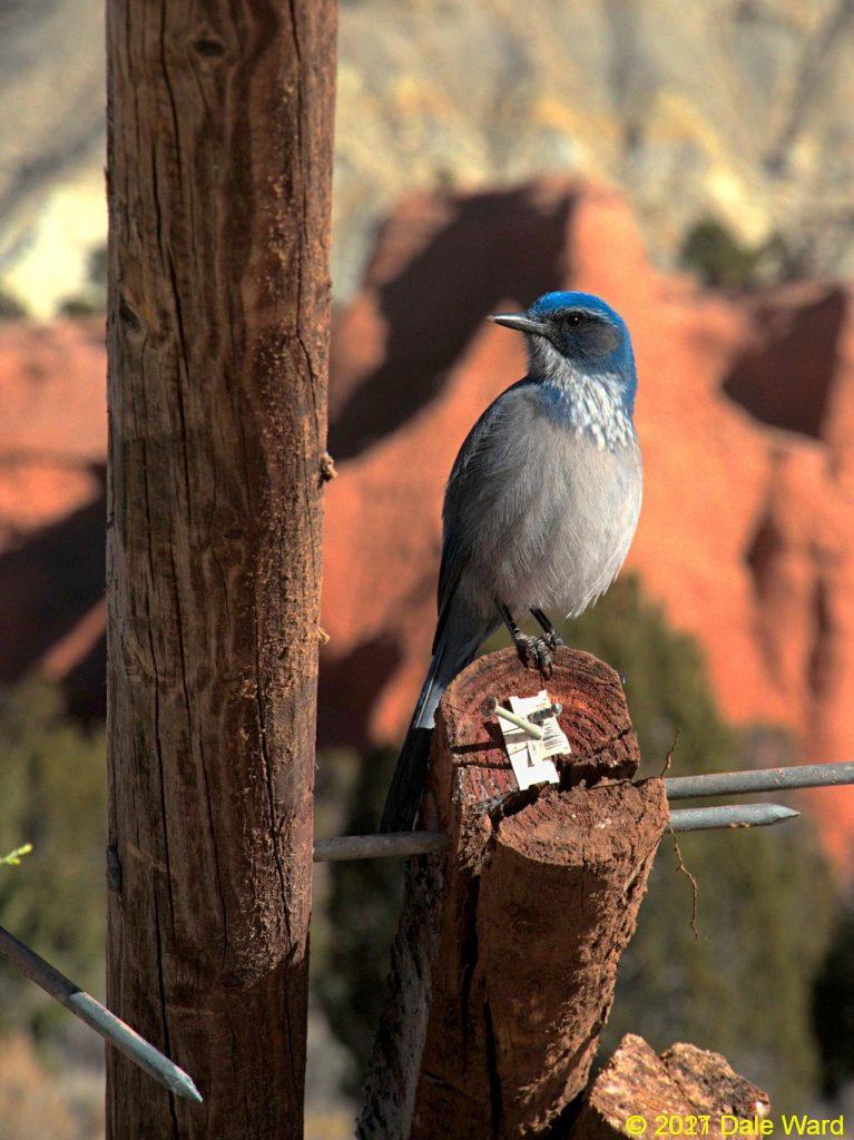 Scrub Jay on fence rail at Kodachrome Basin State Park, Utah