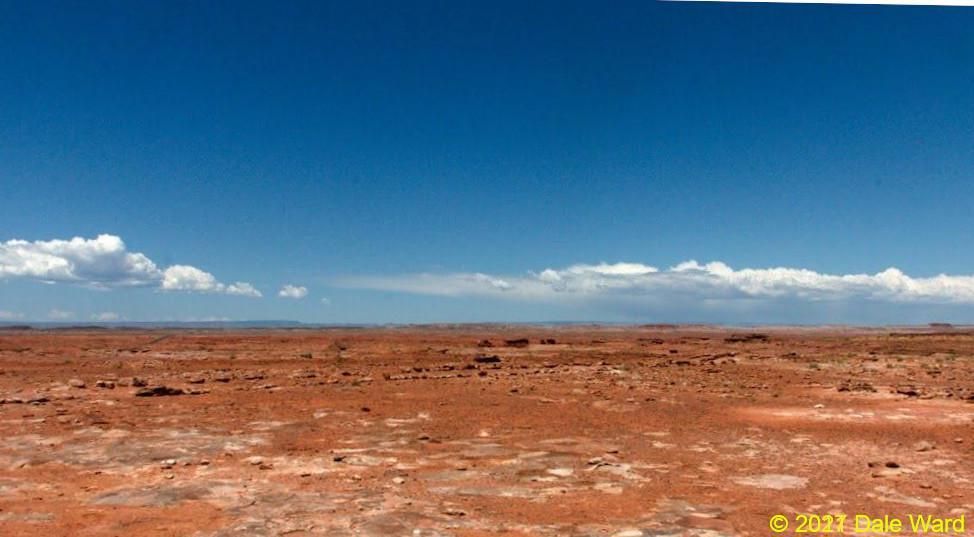 West of Tuba city, Arizona, on the Navajo Nation, the land is mostly a broken landscape of bare slick-rock. It shimmers in the heat in the summer, and stretches away in the distance to a couple of low mesas. I’m usually on my way to someplace else when I pass through here, and I’m usually in a hurry. So it’s always been ‘just scenery’ to me.
