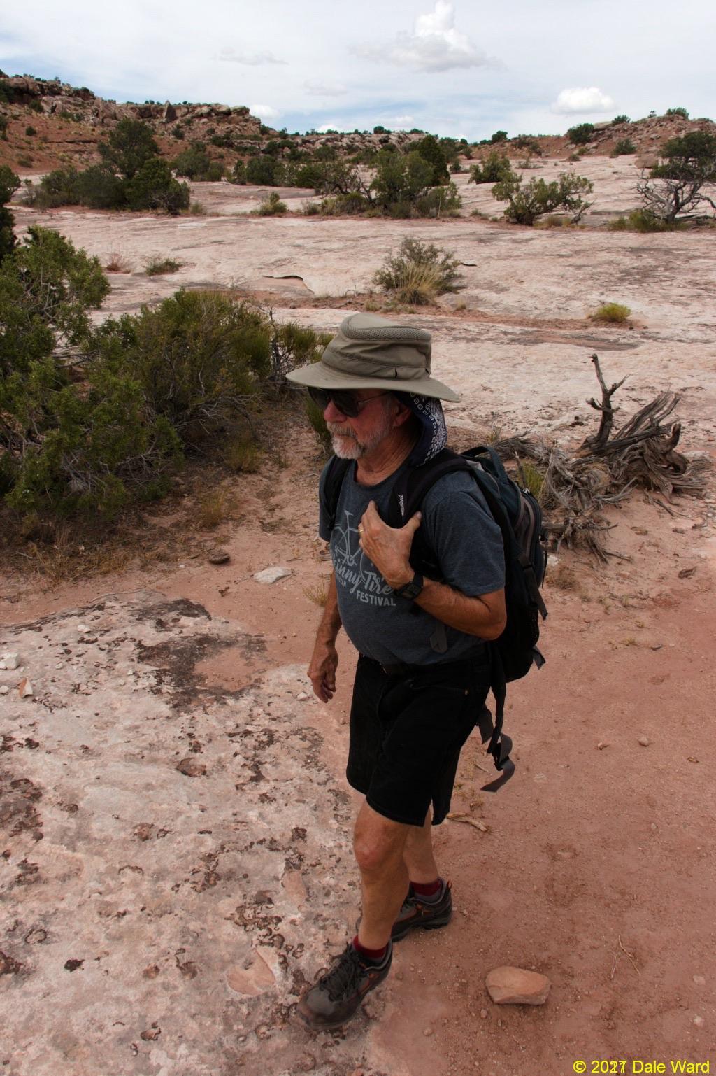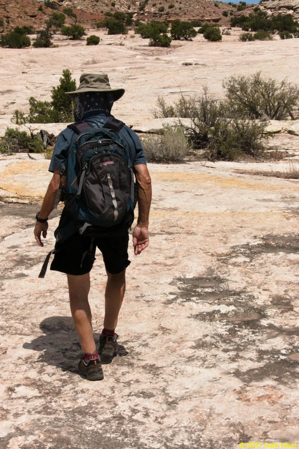 Bill and I were sweating as we walked over the slickrock. It was hot, and there was a cloud of Ravens circling overhead, calling. We were hiking in the Klondike Bluffs, just north of Moab, Utah.