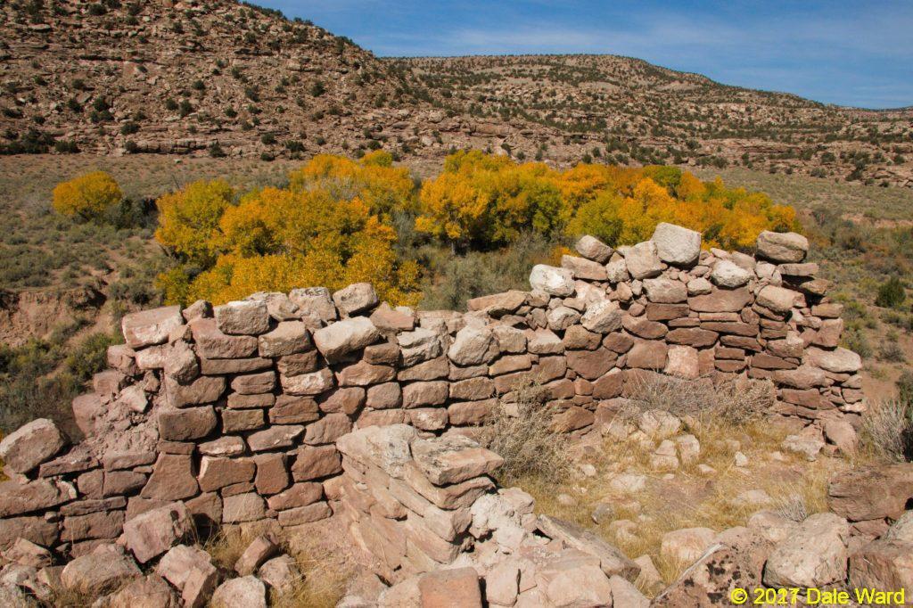 I reached the top of the peninsula of rock and carefully peered over the edge. The mustangs came back into view. They saw me, but did not seem very concerned. I sat and watched the mustangs as they picked their way up the canyon, pausing to graze every few minutes. I noticed that there were a couple of other ruins on the floor of the canyon, nearer to the horses. This site must have been populous, back in the day.