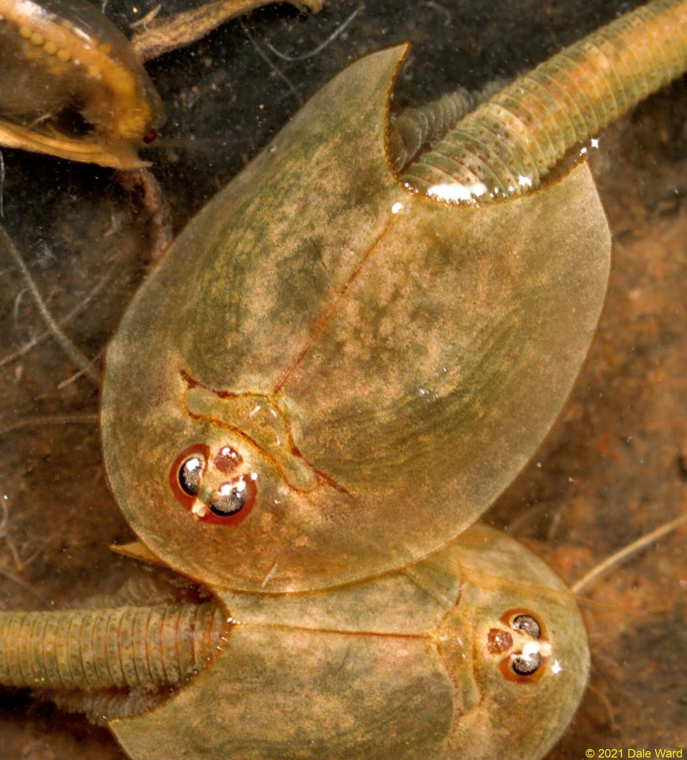 There were tiny ripples on the surface of the water, although there was no wind. As I looked closer, I saw that the ripples were caused by small Tadpole Shrimp swimming just below the water surface. They were colored orange-red against the murky, tea colored water, presumably because of hemoglobin in their gills.