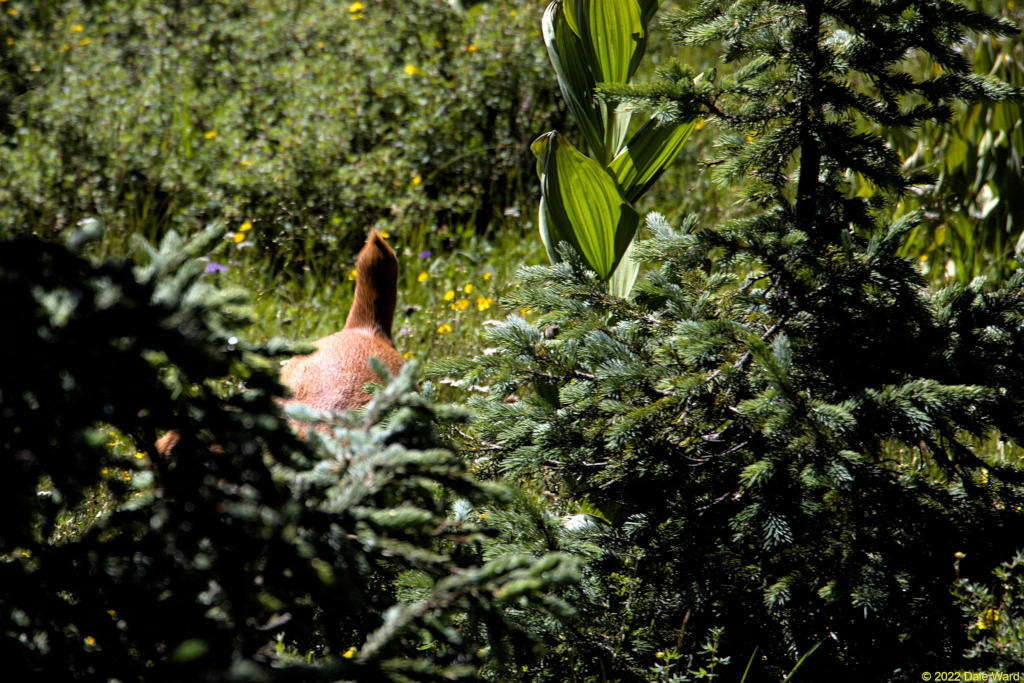 He disappeared into the undergrowth. All I could see was the frantic wiggle of his tail.