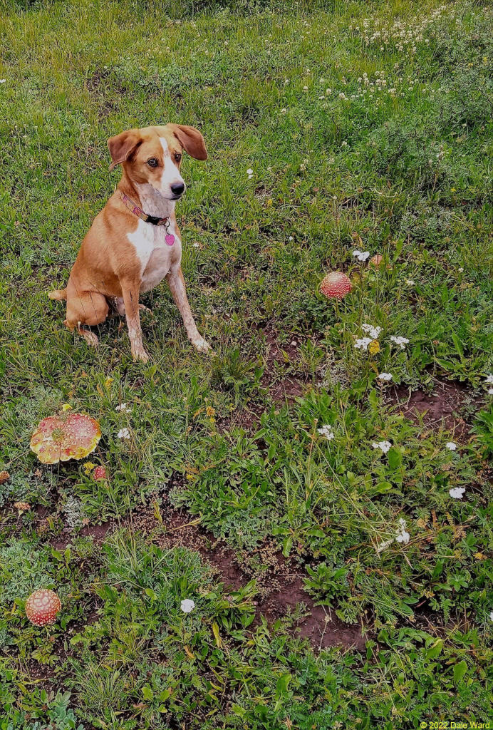 Jack the Hound sitting next to some Fly Agaric Mushrooms (yeah…don’t eat those). Jack is eagerly awaiting his next task - what type of Mushroom shall we find next?