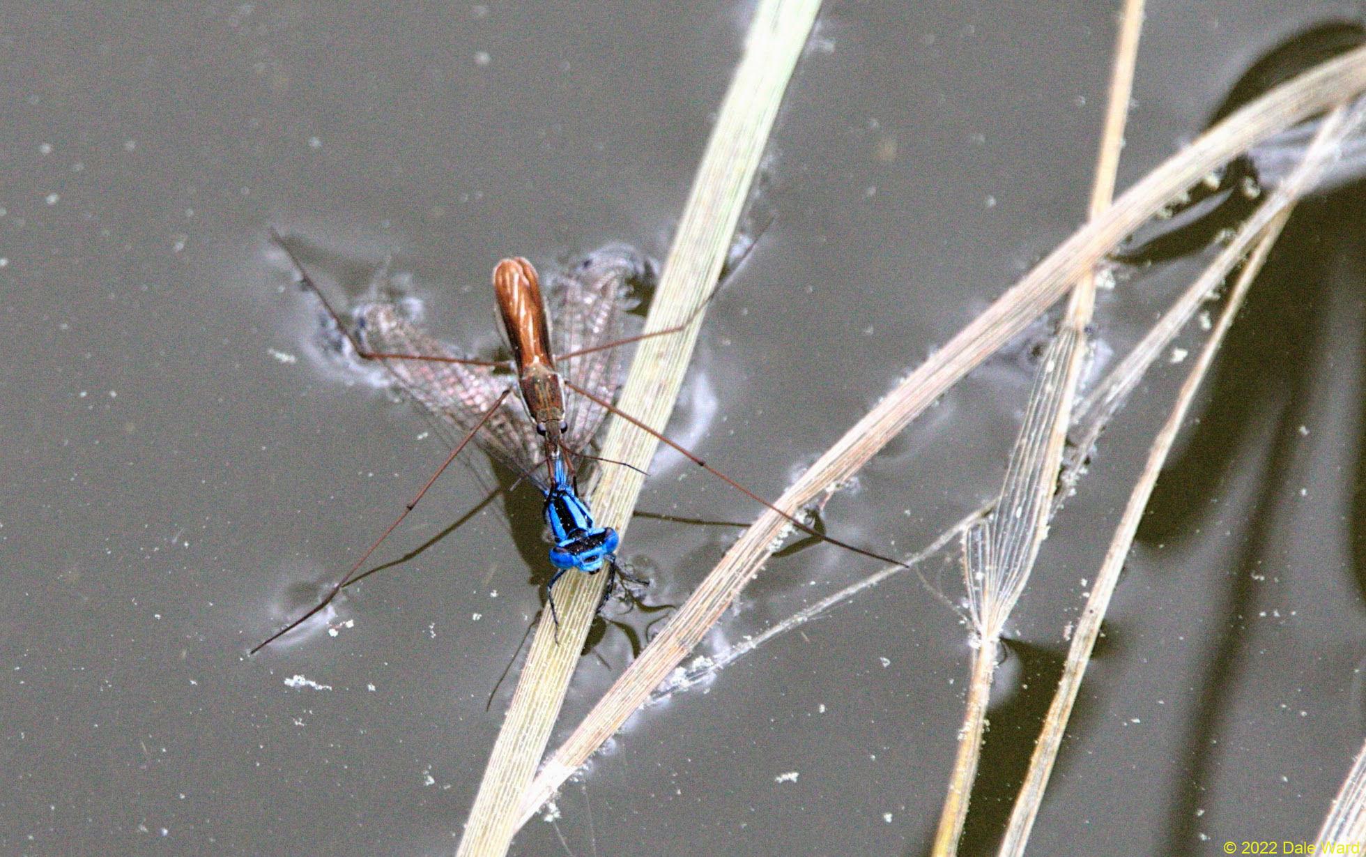 The Damselfly managed to drag the Water-strider through the water for some distance before finally succumbing.